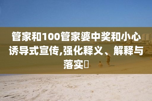 亲爱的读者朋友们,今天我们将围绕“管家”、“100管家婆中奖”这些关键词,为大家带来一次全面的释义、解释与落实,同时特别提醒大家警惕可能出现的诱导式宣传和虚假宣传。